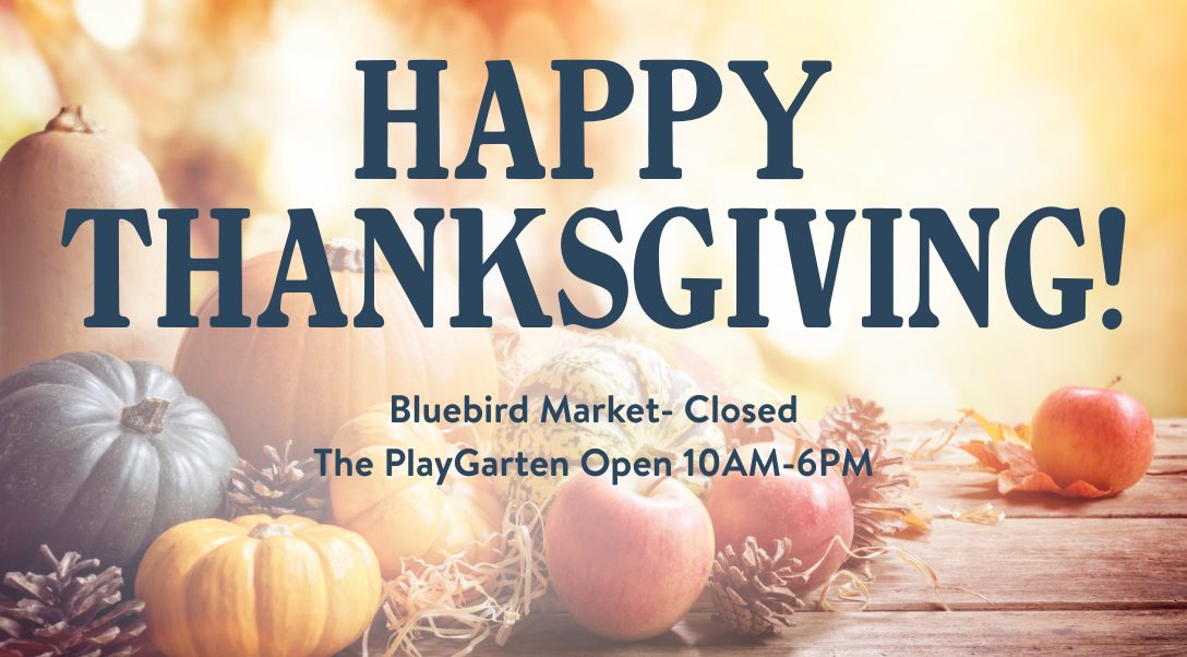 Thanksgiving Bluebird Market Closed, The PlayGarten Open 10AM- 6PM